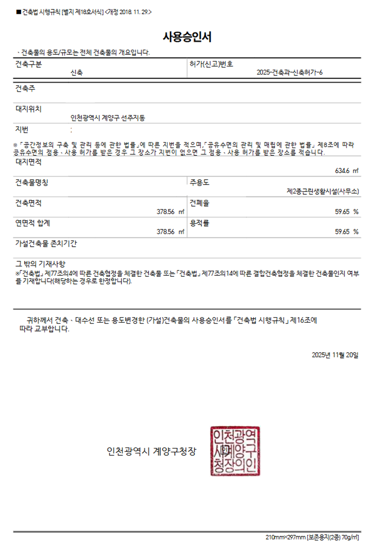 계양구 선주지동 개발행위허가 받아 공사완료 후 준공검사 마쳤습니다. 페이지 정보 작성자 보성측량 댓글 0건 조회 79회 작성일 25-11-27 09:17 본문 계양구 선주지동 개발행위허가 받아 공사완료 후 준공검사 마쳤습니다. 목록 댓글목록 댓글목록 등록된 댓글이 없습니다.